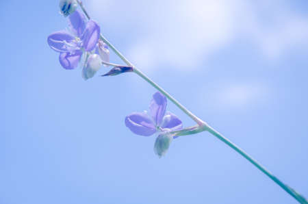 Closed up soft little purple flower in the garden under morning sun light in soft sweet pink tone