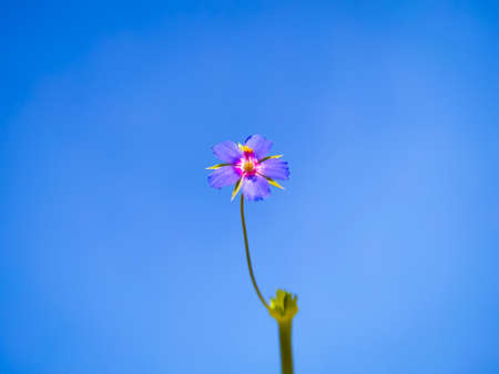 Blue little wild Anagallis Foemina flowers blooming on blue sky background