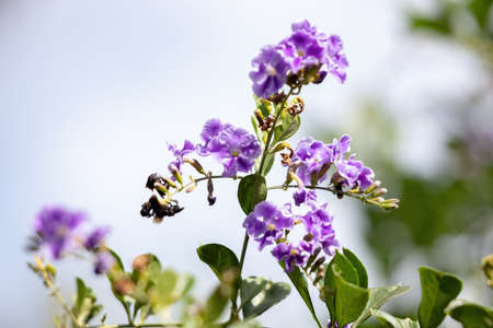 Duranta erecta, Golden dewdrop, Crepping sky flower, Pigeon berry purple flowers bloom beautifully in the garden