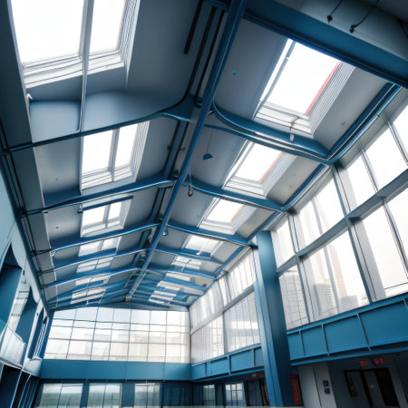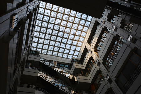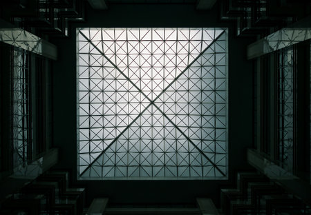Captivating Architectural Perspective: The Mesmerizing Skylight Ceiling of a Contemporary Building