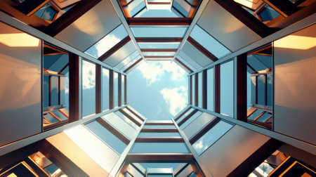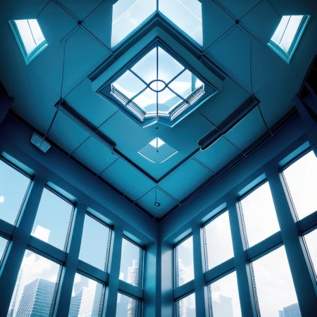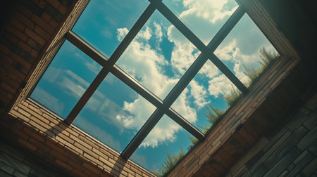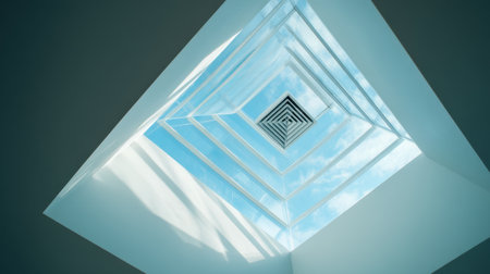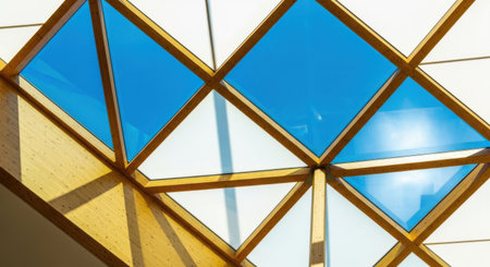 A stunning geometric skylight captures the essence of modern architecture, revealing a beautiful interplay of light, space, and sky.