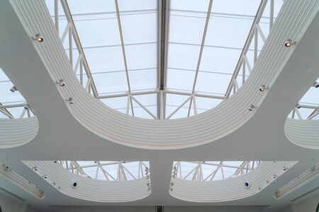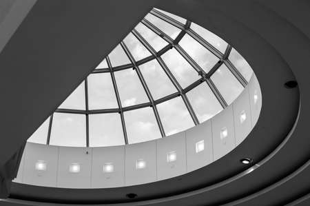 The ceiling of a modern building in the city. Black and white