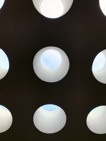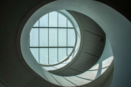 a beautiful background with a round glass window in the ceiling in the modernist new eyes of the building