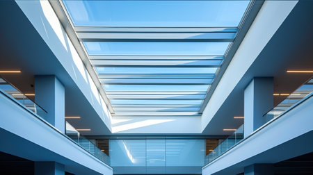Modern office building interior showing innovative skylight design