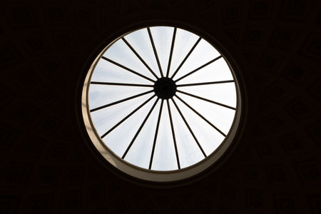 Beautiful Architectural Dome with Glass Skylight and Decorative Details Showcasing Natural Light and Elegant Design Elements in a Historic Building