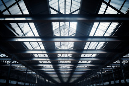 Industrial Premises View: Upward Metal Ceiling or Roof.