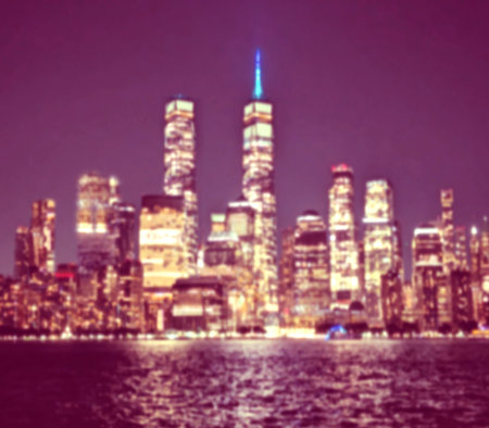 intentionally out of focus of skyline with many skyscrapes and old toned vintage effect