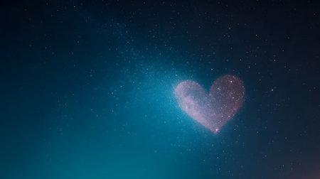 A glowing heart shape formed by a vibrant nebula and countless stars against a deep blue, starry night sky. This ethereal image symbolizes cosmic love, destiny, and the vast beauty of the universe. Evokes wonder, romance, and profound connection.