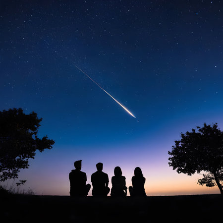 Spectacular meteor shower lights up the night sky with bright streaks over mountain landscape