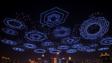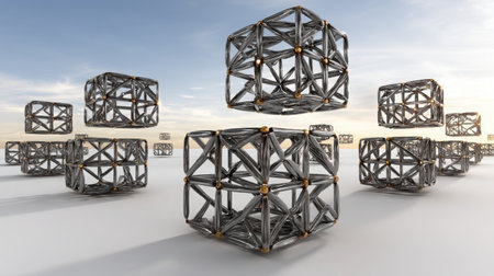This image showcases metallic cubes arranged in a futuristic setting, highlighting unique geometric designs and captivating light reflections.