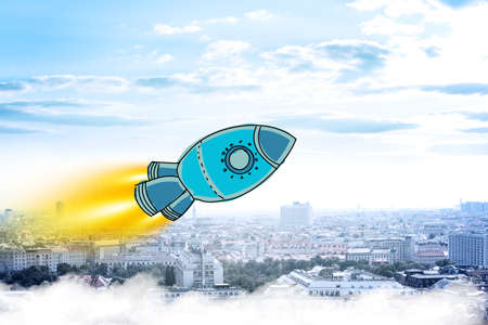 Rockets flying over clouds. business startup