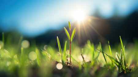 AI Generated. Lush green grass bathed in sunlight evokes a sense of a healthy planet
