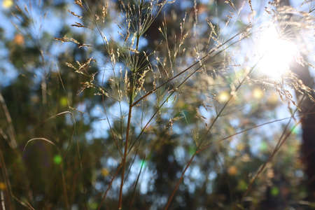 Grasses in focus at sunset. Nature or environment or carbon neutrality concept background photo.