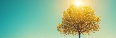 Golden Tree Basking Under the Summer Sun, Representing Growth, Serenity, and the Beauty of Nature