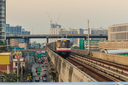 BANGKOK, THAILAND - Mar. 8, 2018 : Bangkok Mass Transit System or BTS skytrain is an elevated rapid transit system in Bangkok to solve the problem of road congestion.