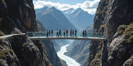 Glass Bridge Canyon People Walking Scenic Transparent Footbridge Mountain View