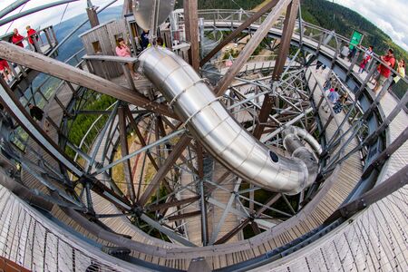 Velka Morava, Pardubick? kraj / Czech Republic - August, 14, 2018: Path in the clouds built in the Czech Republic. Steel construction in the mountains of Central Europe. Summer season.