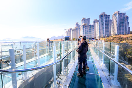 Busan, South Korea - March 14, 2018 : Scenery of Oryukdo sky walk in Busan city