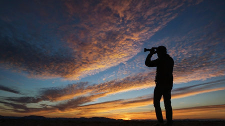 a background with the silhouette of a photographer capturing a sunrise