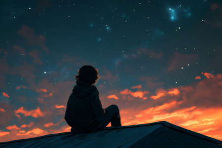A boy gazes at the starry night sky, embracing the vastness of the universe.
