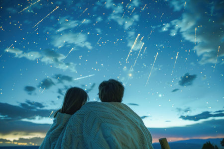 A man and a woman sit under a blanket, gazing at the stars, feeling the vastness of the universe in the night sky