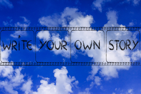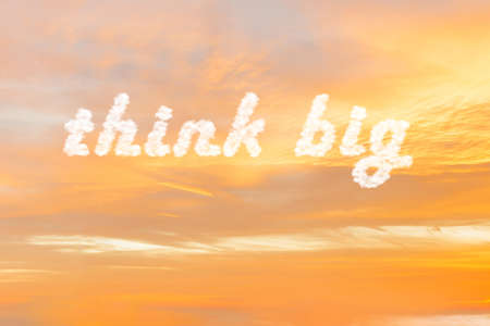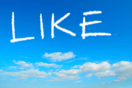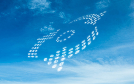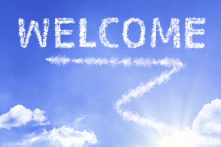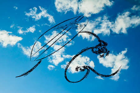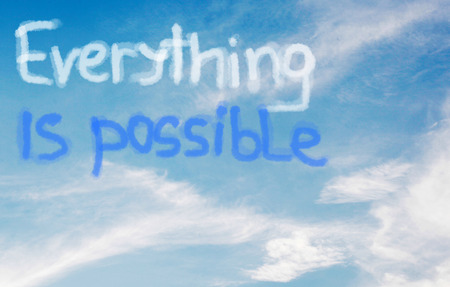 HOPE inscription painted with clouds on a blue background with white clouds with arrows