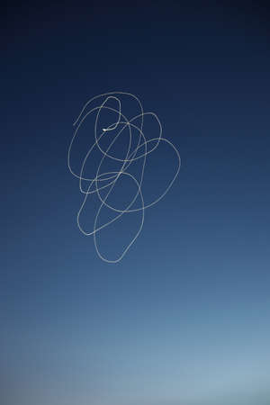 Drawings of smoke in the sky, heart shaped, made from airplanes at a airshow demonstration.