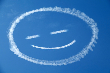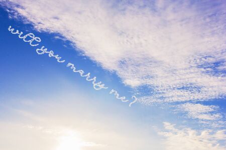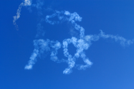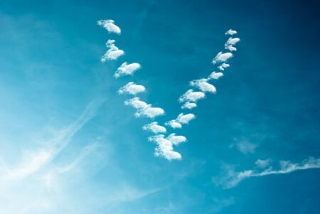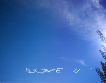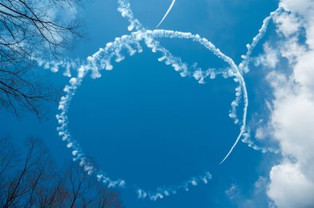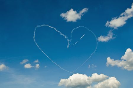Air Show White Smoke Heart On Blue Sky with White Clouds