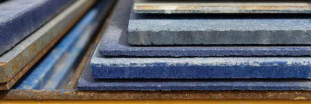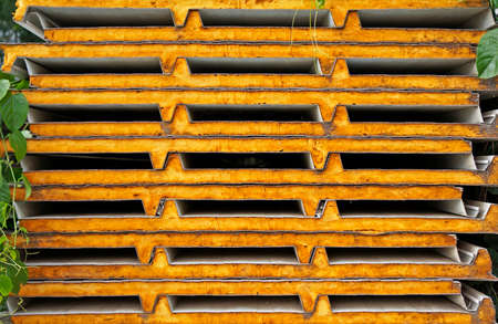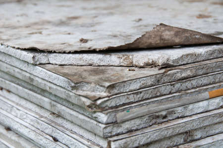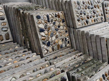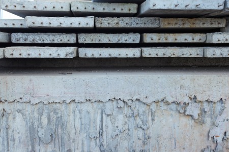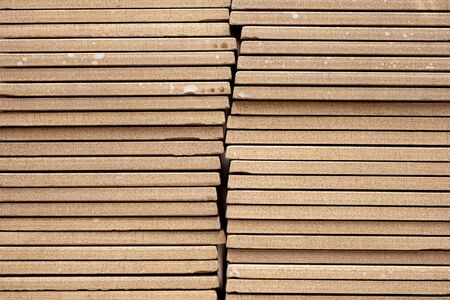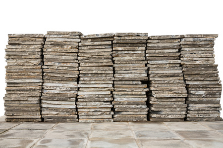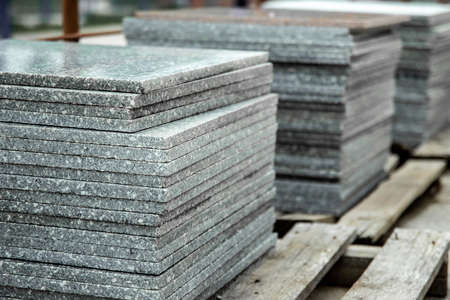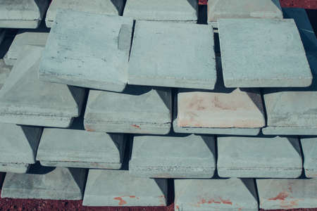 Concrete slabs stacked on top of each other. Stack of gray tiles.