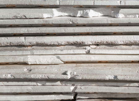 Polystyrene foam. White background. Dirty and old foam sheets.