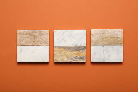 Sample of artificial acrylic stone for kitchen countertops and other furniture. Stone texture for modern interior design