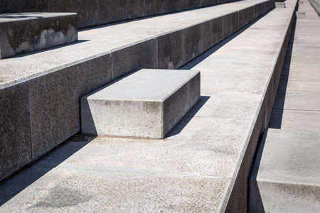 Stone staircase in centre of city. Outdoor stone steps background texture made of multitude slab.