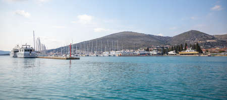Trogir, Croatia - 27.03.2021: View from water of port and marina in Trogir, Croatia