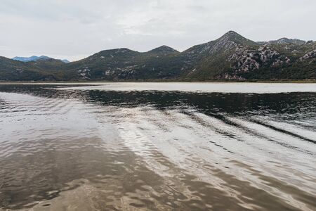 Nature views of Lake Skadar National Park in Montenegro. Water and green mountains panorama
