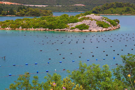 Shellfish farm in Croatia. Oyster farming off the coast of Peljesac Peninsula.