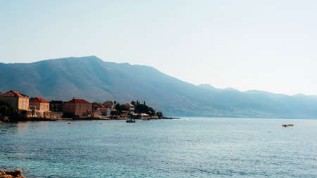 The old fishing town of Perast on the shore of Kotor Bay in Montenegro.