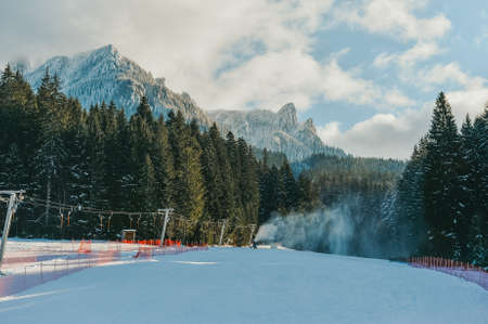panoramic view of winter snowed mountains beauty in nature. copy space