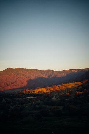 Sunrise in the Carpathian mountains landscape
