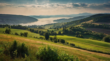 The hilly nature of Eastern Europe. Background with copy space for text or inscriptions, toned