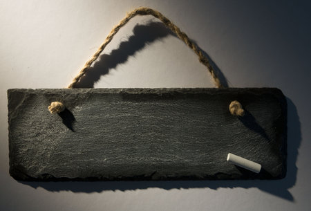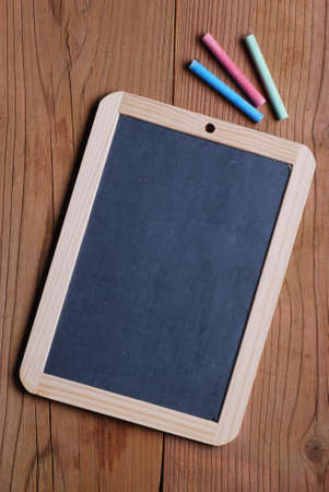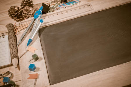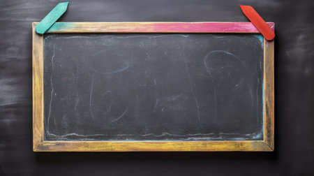 Blank portable blackboard for adding chalk text and copy space. Old school objects for educative aesthetics presentation template. Right side copy space for design or logos
