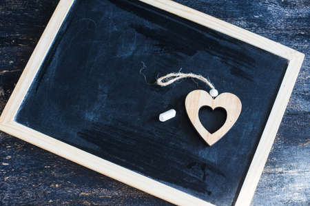small vintage chalk blackboard on rustic wooden table, concept of leaving a message