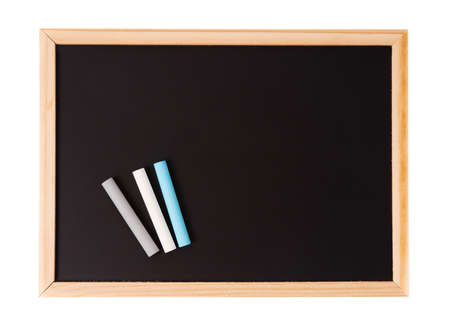 blackboard with wooden bamboo frame, blackboard on white background for concept education