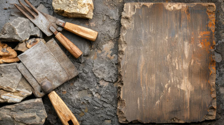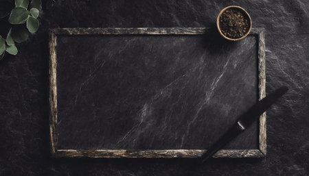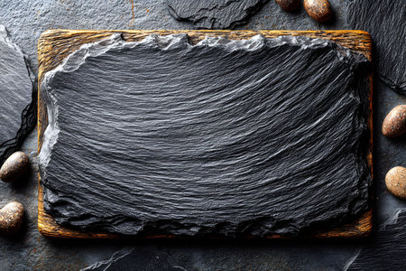 Slate stone cutting board on a dark textured background, perfect for culinary presentations. the rustic design offers an ideal backdrop for food photography, emphasizing natural textures and modern aesthetics. Generative AI