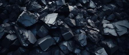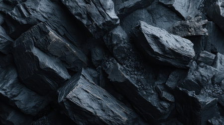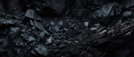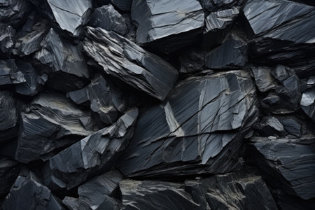 Close-up of a dark, heavy heap of varied coal, highlighting intricate details and rough edges. AI generative.