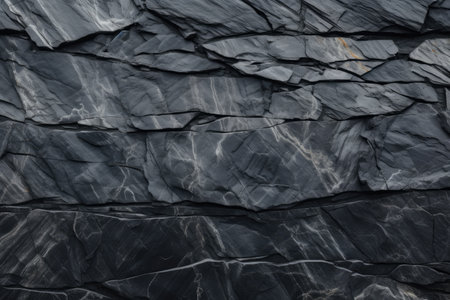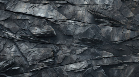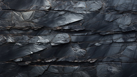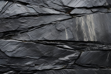 Close-up view of a dark stone surface showcasing angular patterns and rough textures, ideal for design, artistic projects, or geological themes.
