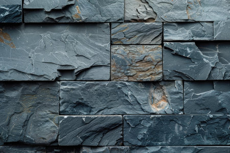 Closeup view of a wall with varied slate stones, highlighting texture and pattern