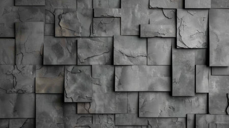 Textured gray wall composed of various rectangular panels, showcasing modern and industrial design. surface features cracks and variations, adding depth and character to overall appearance