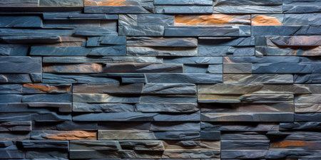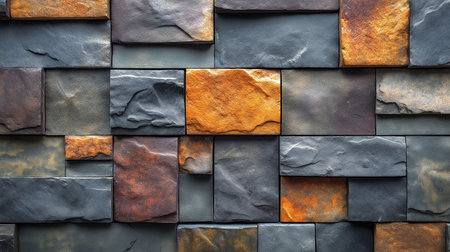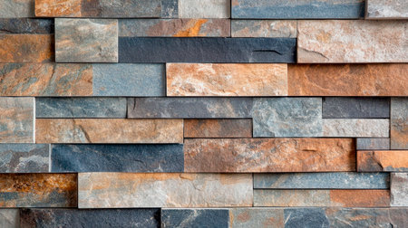 Close-up view of stone wall tiles with varied colors and textures, masonry concept