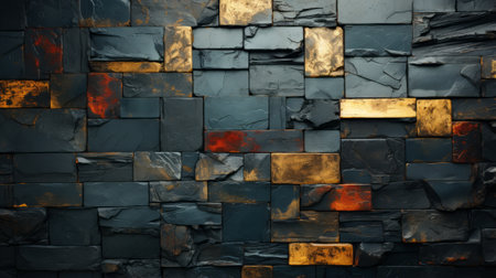 slate tile featuring a subtle blue color and elegant gold accent adds a touch of sophistication to any room, perfect for creating a luxurious ambiance in bathrooms, kitchens, and living spaces, while its natural texture and earthy tone bring warmth and coziness to modern interiors. ai generated