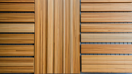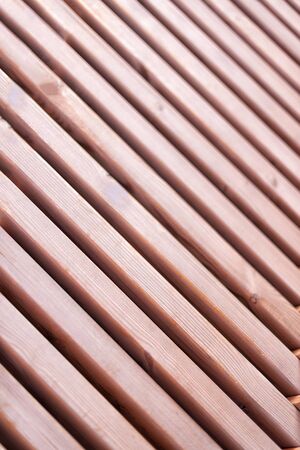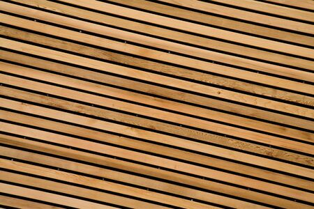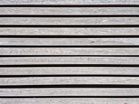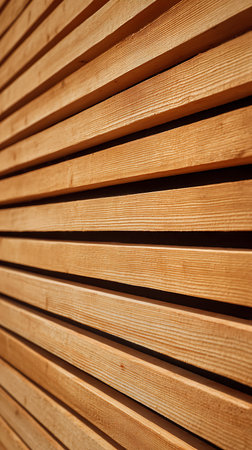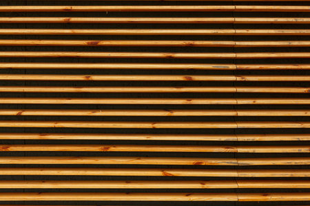 Close up of wooden slats arranged in horizontal parallel pattern